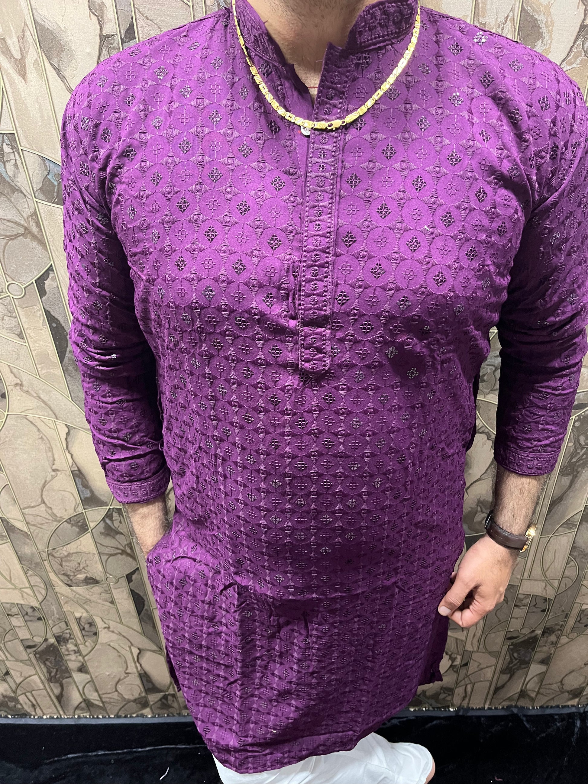 Men’s Chikan Purple Kurta – Elegant Sequence Work for Festive Wear A20
