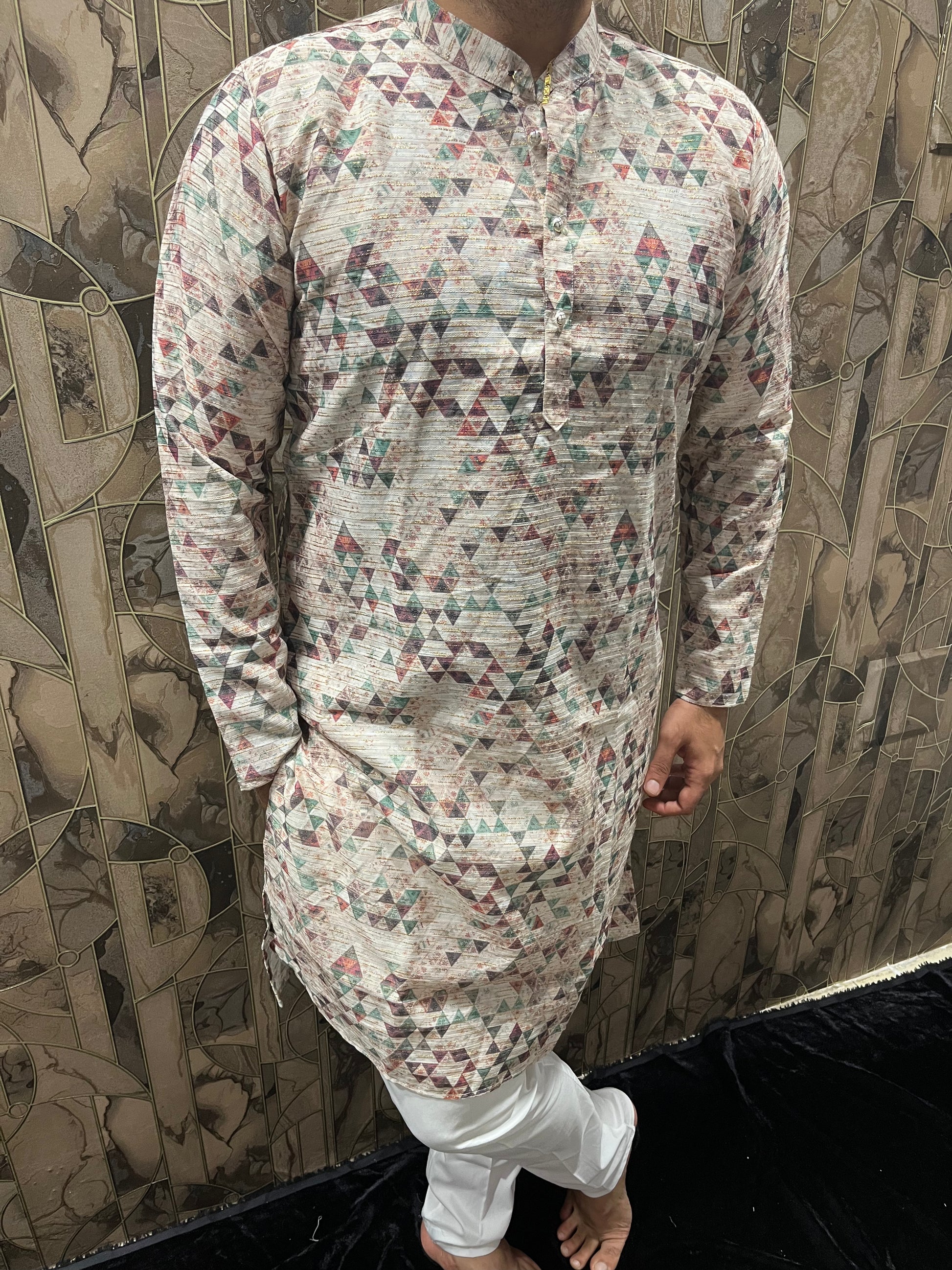 Men’s Cotton Kurta – Minimal Gold Print in Multicolor Design A18