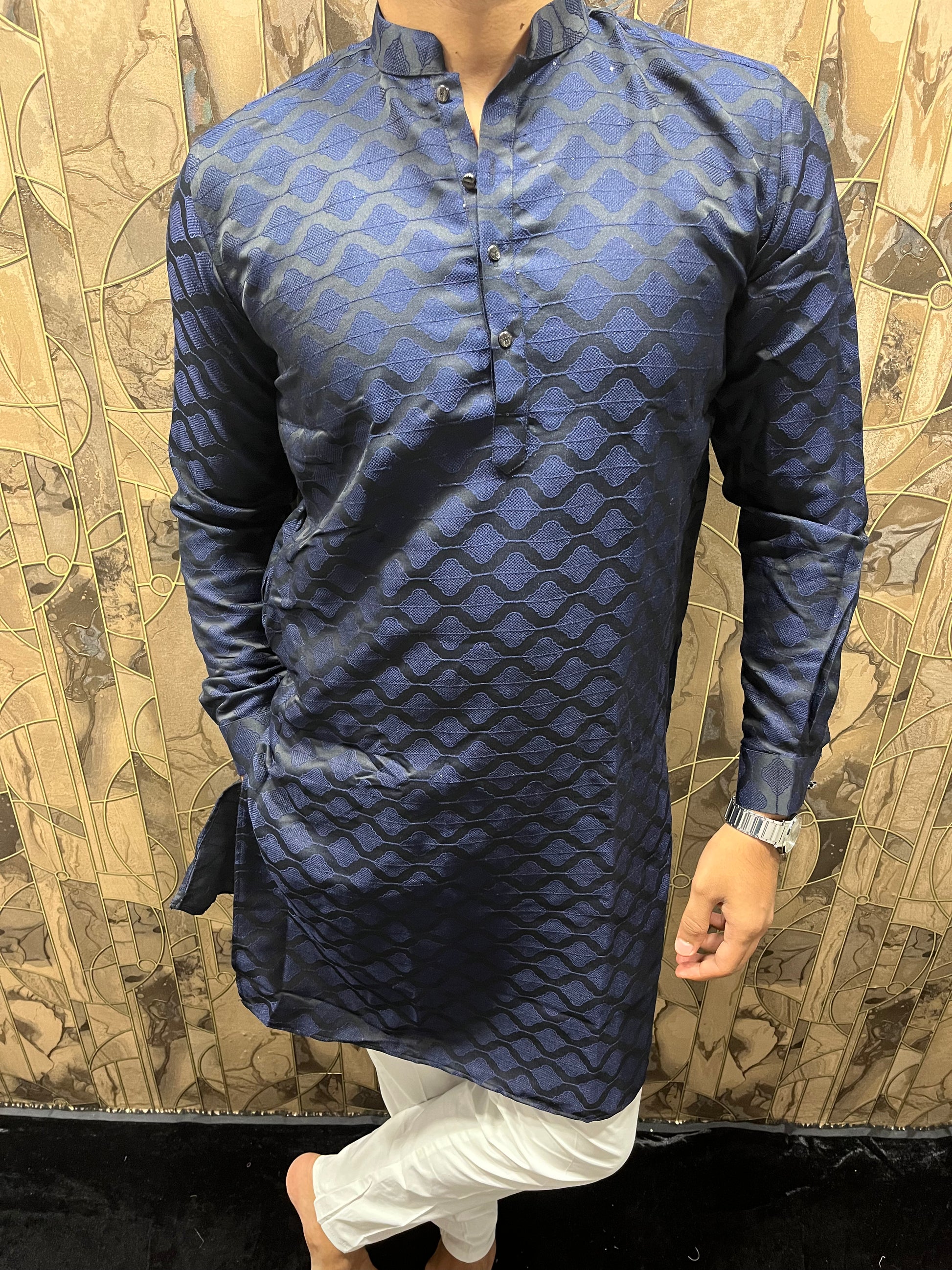 Men’s Cotton Navy Blue Kurta – Subtle Thread Work for Festive Wear - A9